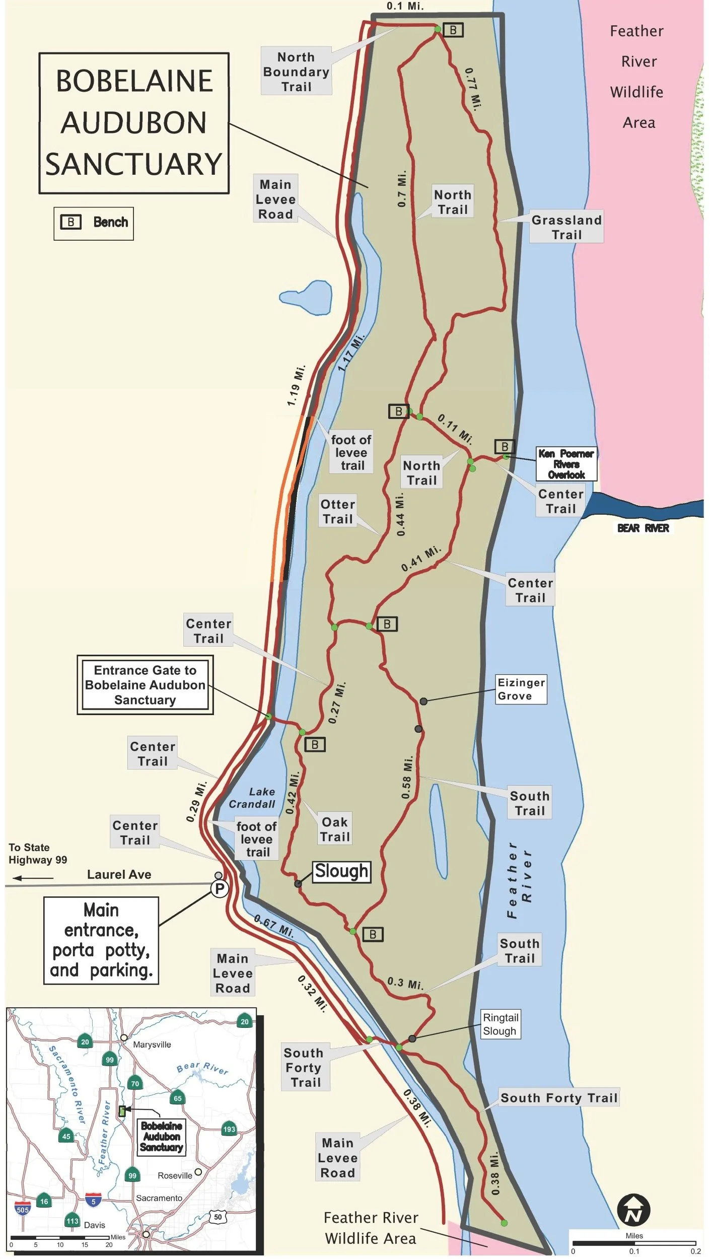 In 1994, Sacramento Audubon produced a field guide to Bobelaine Audubon Sanctuary. While it is no longer in print, you can view a pdf of the guide or this printer-friendly version.